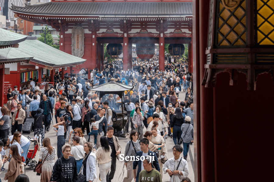 Le quartier traditionnel d’Asakusa abrite lui le temple Senso-ji, le plus vieux temple bouddhiste de la capitale. Le sanctuaire est imposant puisqu’il s’agit d’un complexe bouddhique qui englobe des rues entières. L’entrée est un impressionnant portail, la Kaminarimon, auquel est suspendue la plus grande lanterne en papier du Japon (700kg tout de même), devenue l’icône du quartier.