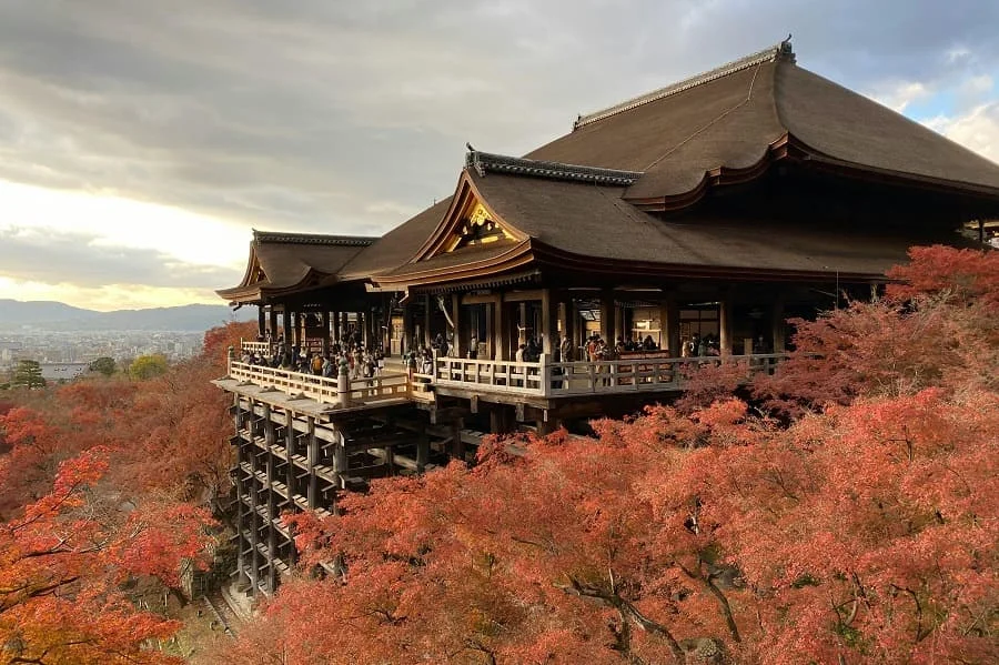 Nous terminerons la journée par la visite du Kiyomizu-dera, un gigantesque espace bouddhiste surplombé par son majestueux temple principal, le Kiyomizu-dera Hondo, dont la plateforme flotte à treize mètres au-dessus du sol.
